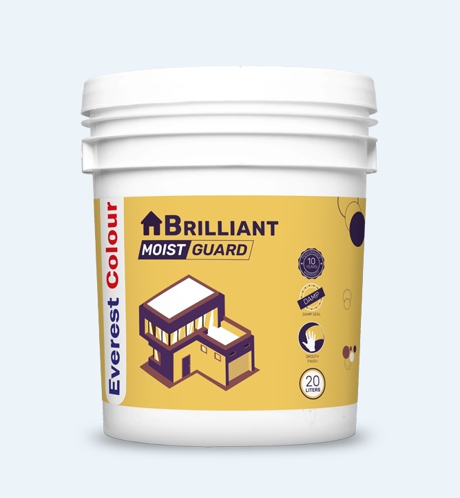 Everest Brilliant Moist Guard is a fiber reinforced elastomeric waterproof coatings for exterior surface. Due to the elastomeric and resilient acrylic polymers with polyester fibers forms a thick and durable membrane when cured properly. It reduces carbon dioxide diffusion that prevents the corrosion of rebar.